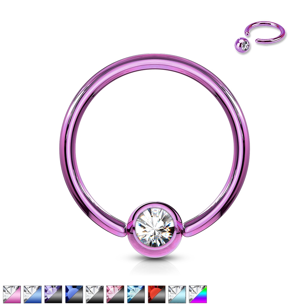 Piercing kroužek - kulička s kamínkem PKR00116